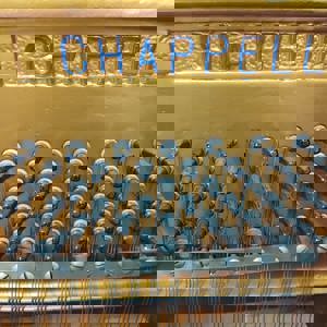 This piano has a fully restored casework in black polyester finish, and is in very good condition.