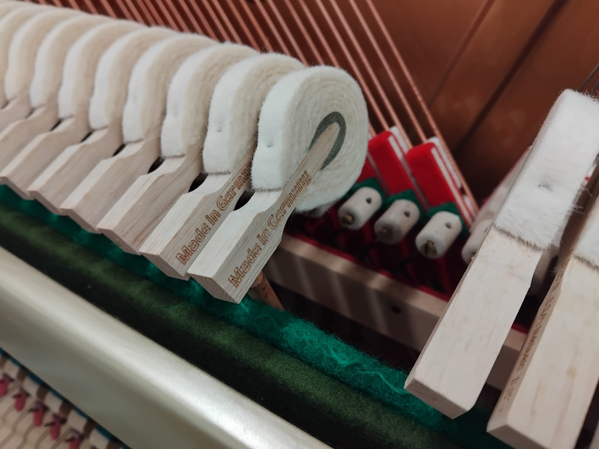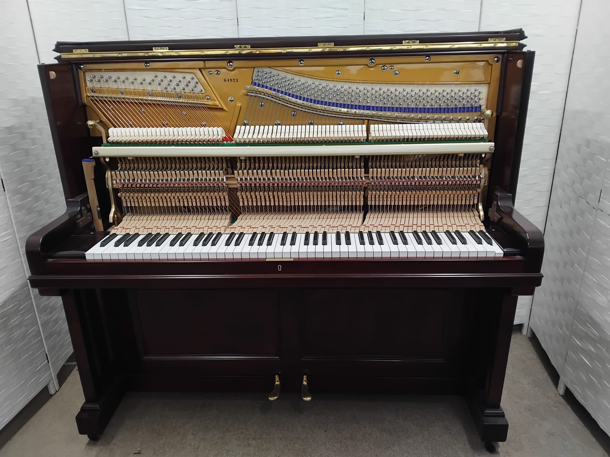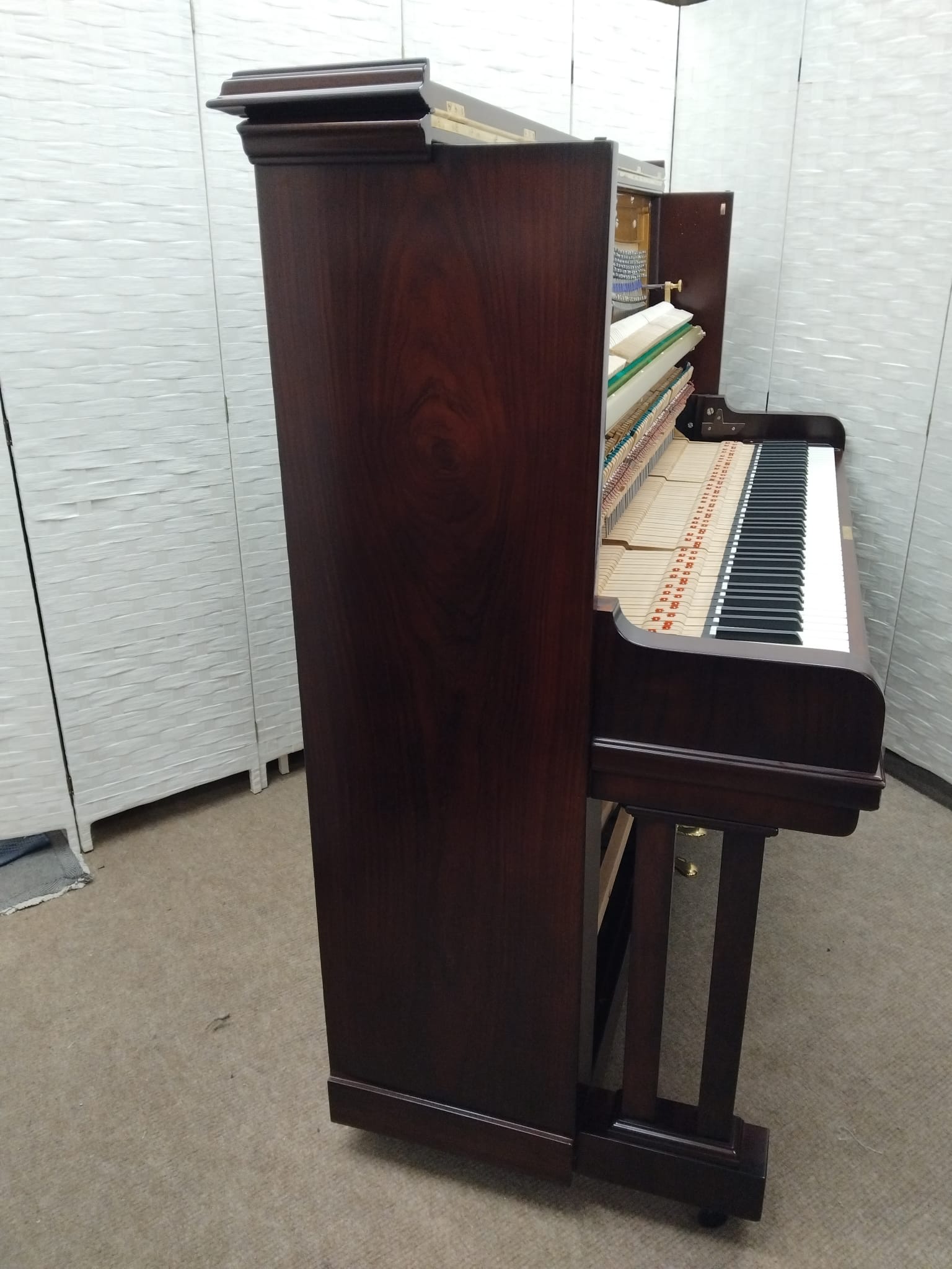 All sound structure, including the soundboard, bridges, wrestplank, strings and iron frame have been completely rebuilt. The mechanism has also been rebuilt using top quality German hammers and dampers.