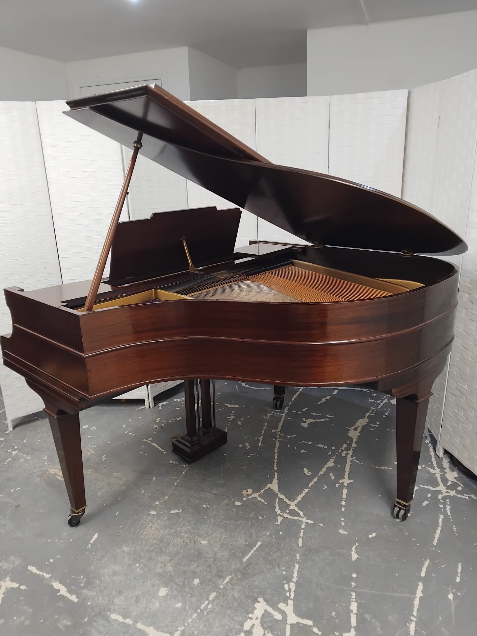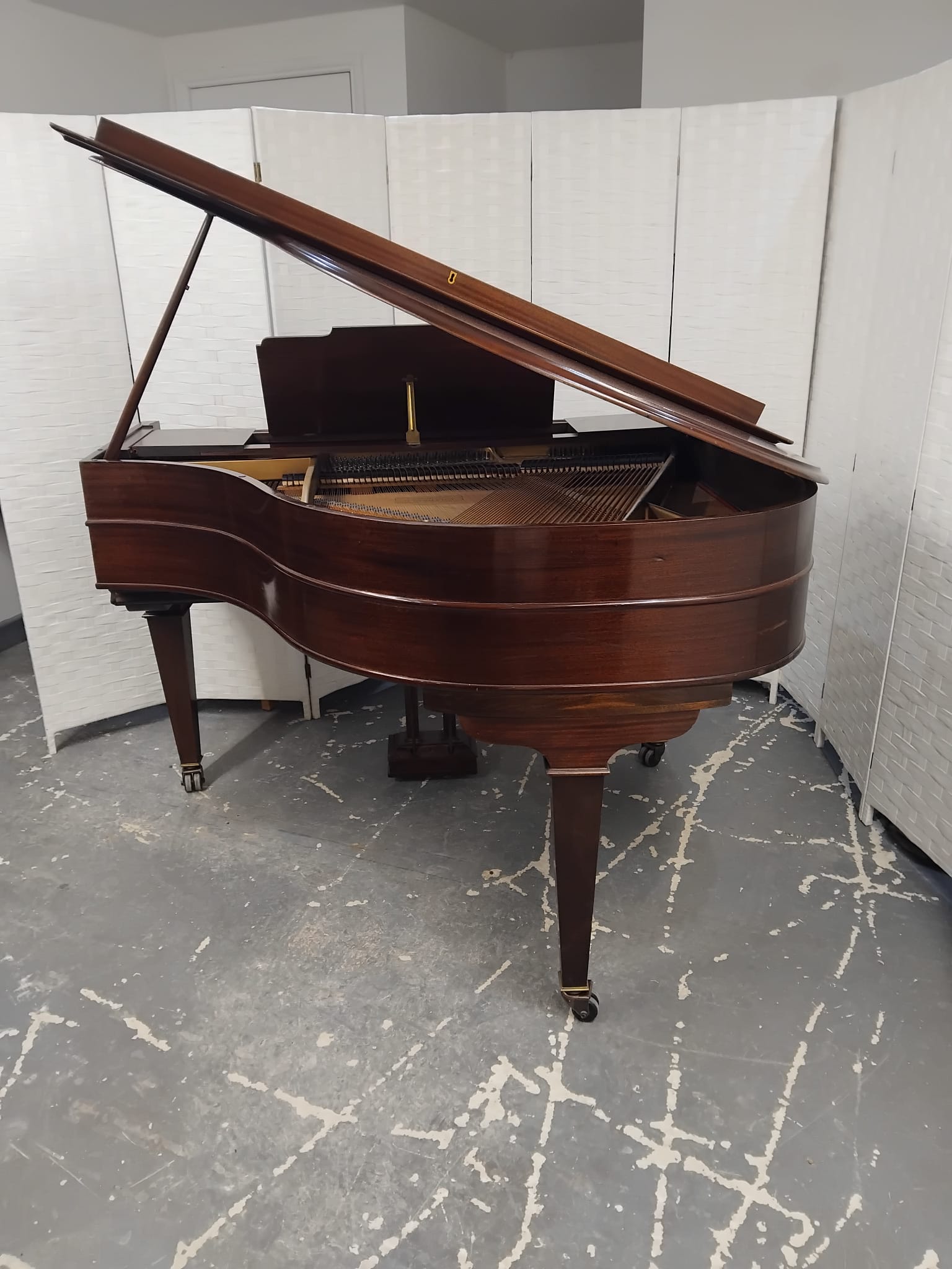 This is a lovely compact Grand Piano in a mahogany case, manufactured in circa 1928. It has a full keyboard and the standard sustain and Una Chorda pedals.