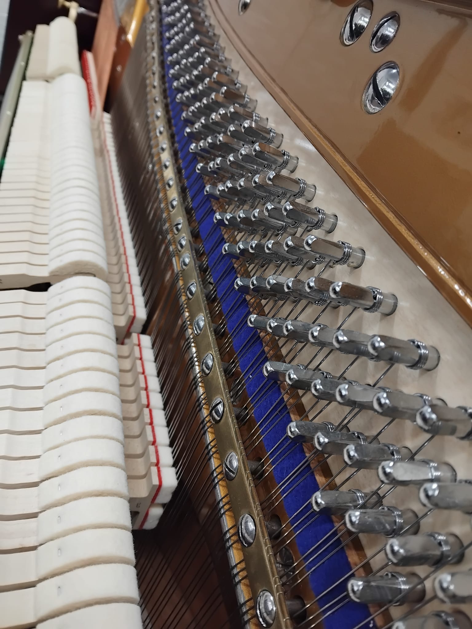 All sound structure, including the soundboard, bridges, wrestplank, strings and iron frame have been completely rebuilt. The mechanism has also been rebuilt using top quality German hammers and dampers.